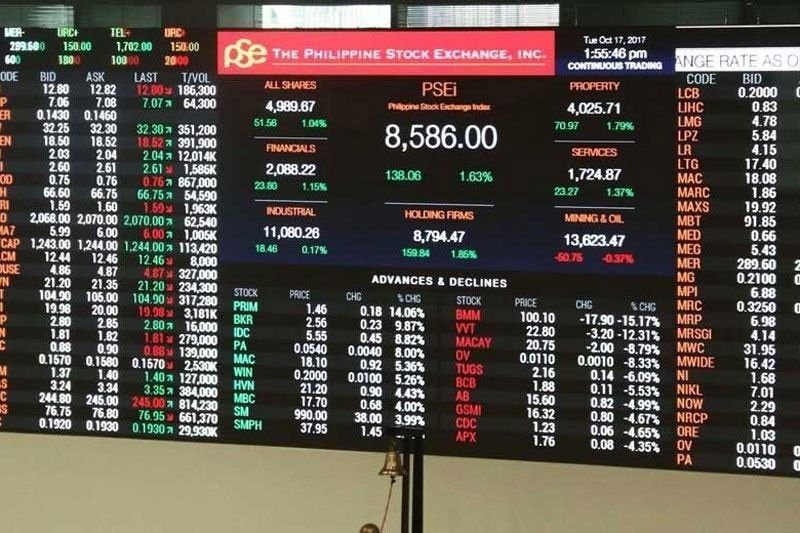 The benchmark Philippine Stock Exchange index posted slight gains to start the week, as investors bought stocks at cheaper prices after a period of decline.