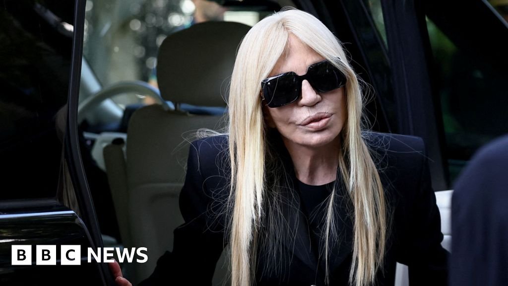 Italian designer Donatella Versace carried a bouquet of white flowers as she arrived to pay tribute to the late designer Giorgio Armani.